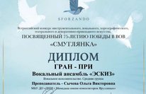 Всероссийский конкурс инструментального, вокального, хореографического театрального и декоративно-прикладного искусства,ПОСВЯЩЕННЫЙ 75-ЛЕТИЮ ПОБЕДЫ В ВОВ«СМУГЛЯНКА» -