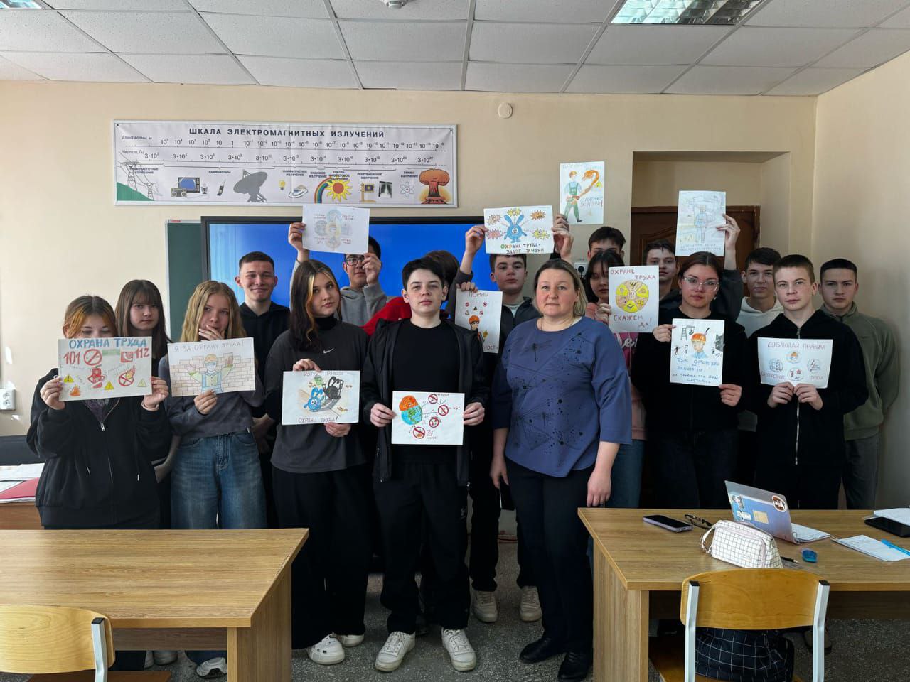 В рамках месячника, посвященного Всемирному дню охраны труда, были проведены следующие мероприятия: конкурс плакатов и рисунков, классные часы, тренировки по пожарной безопасности и антитеррору, викторины, деловые игры, субботники по уборке территории.