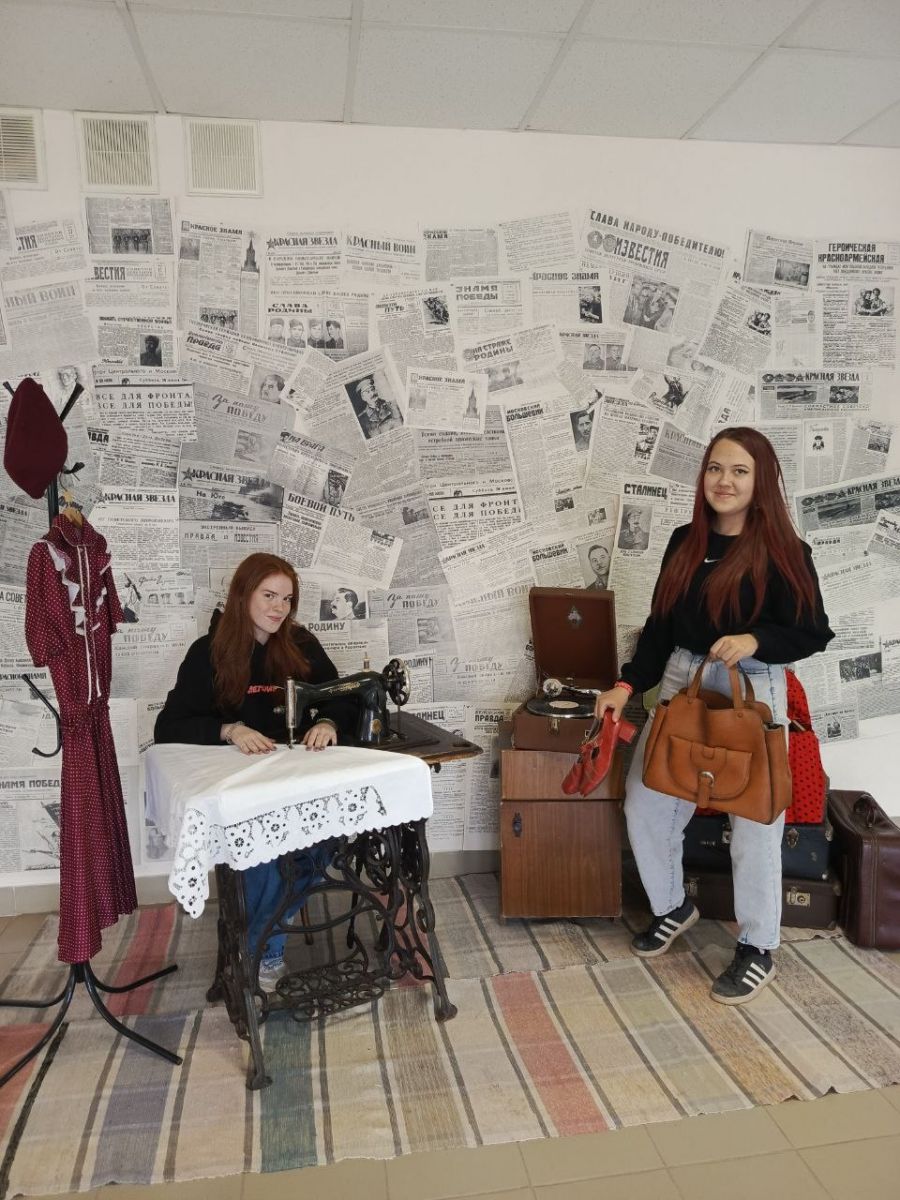 Накануне праздника 9 Мая в колледже открыта фотозона, украшенная тематическими элементами эпохи Великой Отечественной войны, позволяющая окунуться в атмосферу тех лет.