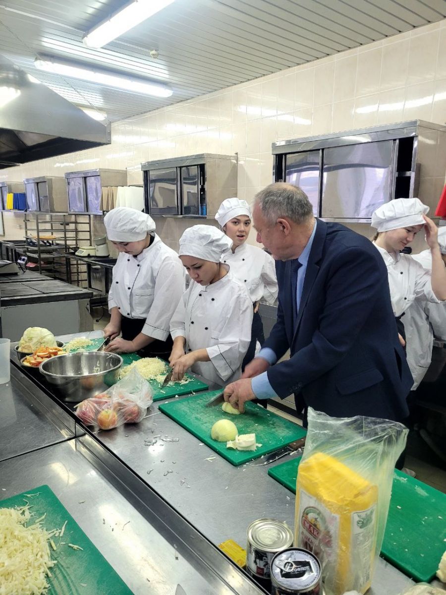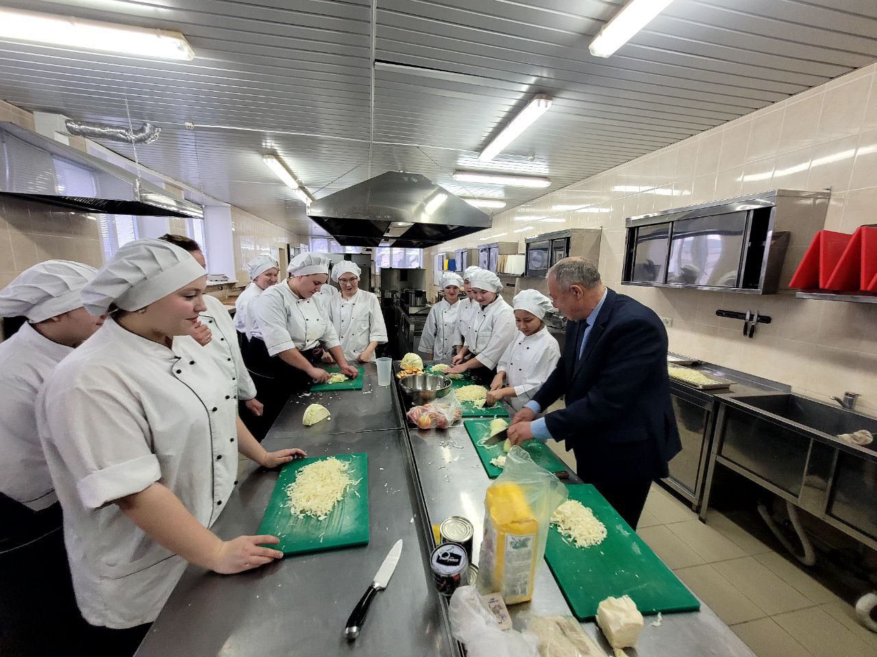 Технологи выпускной группы совместно со своими мастерами производственного обучения и директором колледжа Егоровым Н.Н. готовили пироги для поезди с благотворительной акцией в Шадчинский дом интернат.