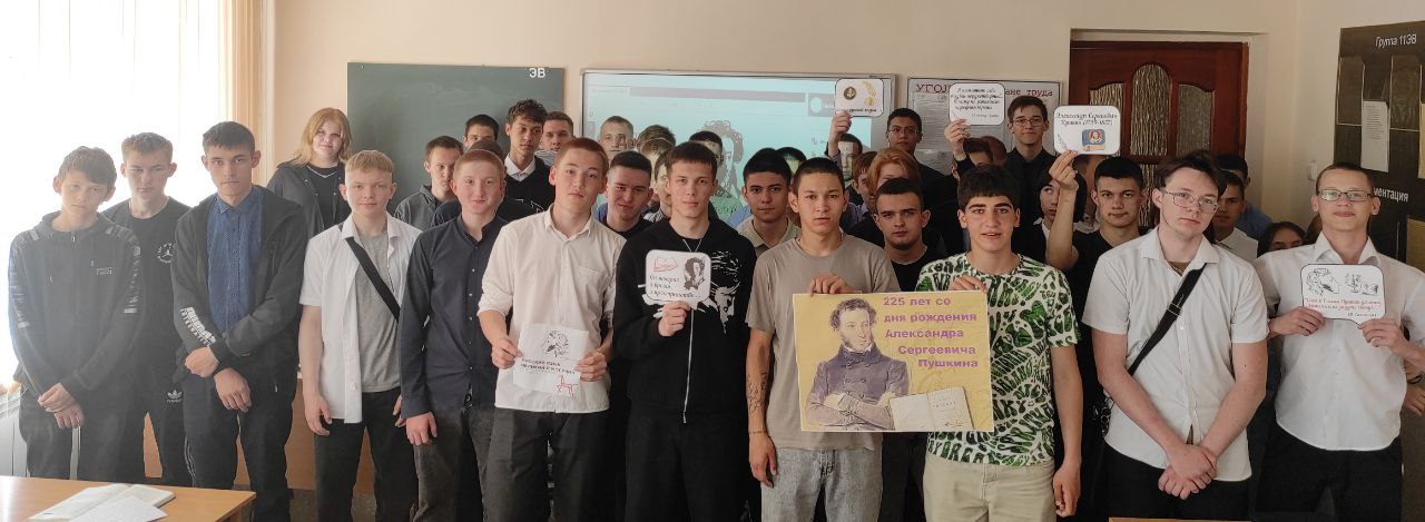 Для первых и вторых курсов преподаватель русского языка и литературы Гареева А.В. провела классный час, посвященный 225-летию со дня рождения А.С. Пушкина, в ходе которого ребята просмотрели видеоролик про факты из жизни великого поэта, о его творчестве.