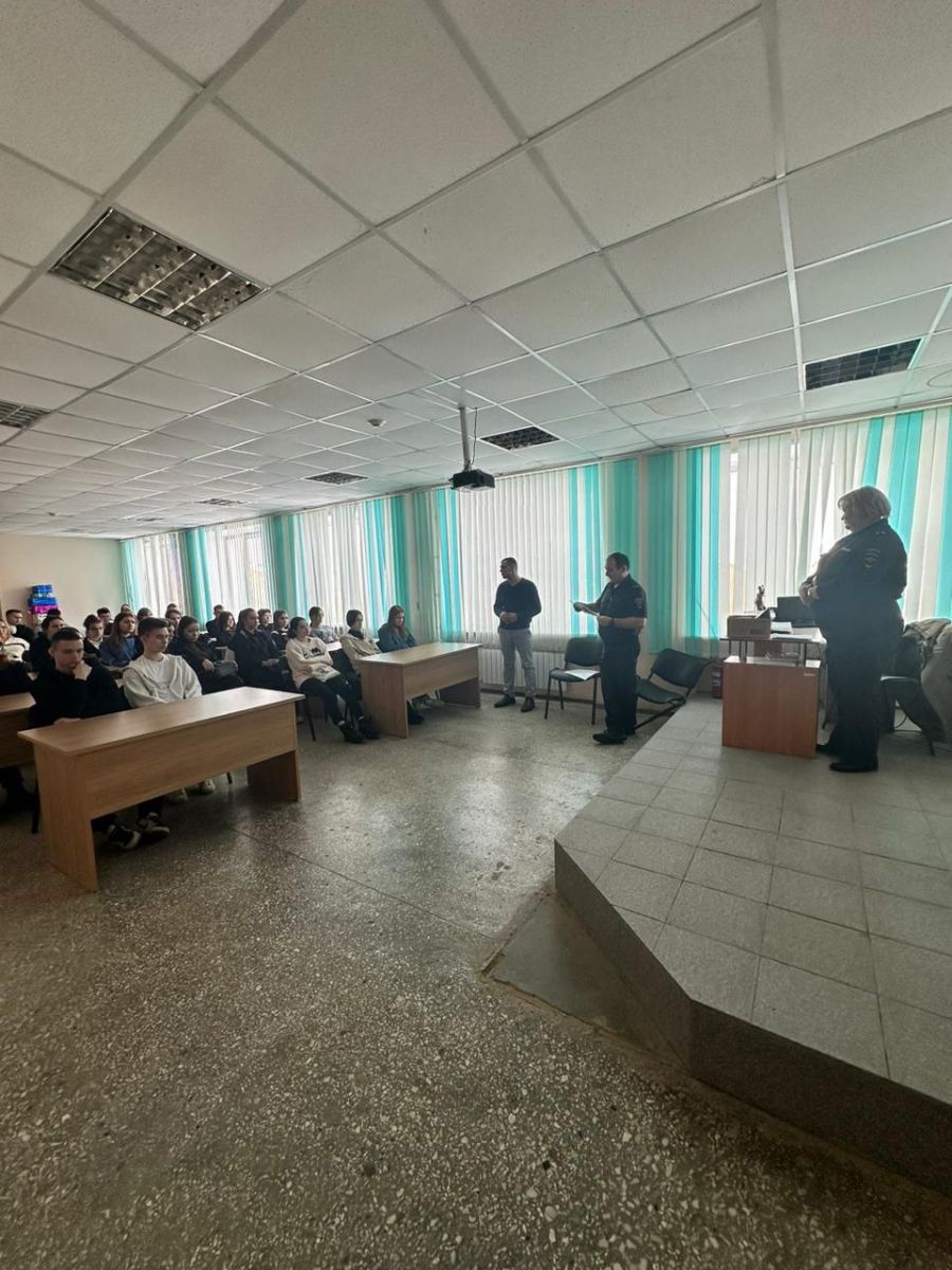 Сегодня в нашем колледже состоялась встреча студентов 2 и 3 курсов,обучающихся по специальности "Право и социальное обеспечение" с заместителем начальника отдела МВД России по Мамадышскому району (по работе с личным составом) подполковником полиции Нигмедзяновой Юлией Владимировной и начальником отдела участковых уполномоченных полиции и по делам несовершеннолетних отдела МВД России по Мамадышскому району подполковником полиции Гиниятовом Ильназом Миннулловичом.