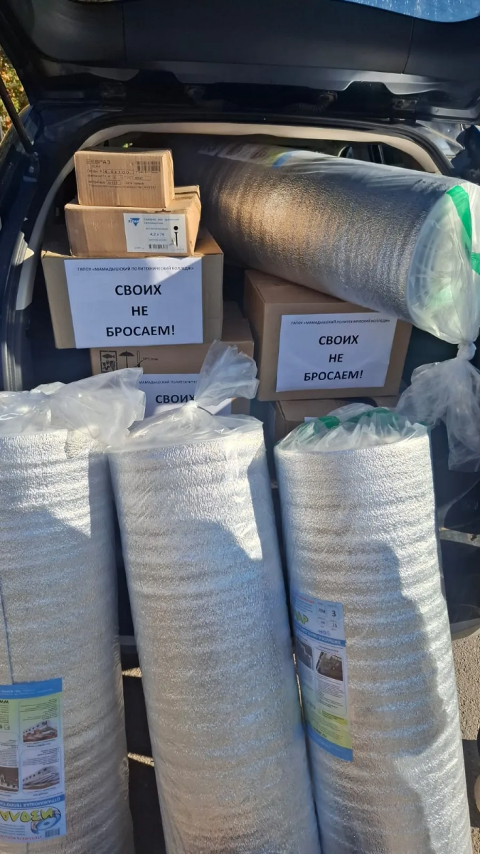 Студенты ГАПОУ «Мамадышский политехнический колледж» вместе со своими родителями, преподавателями и мастерами производственного обучения проявили высокую активность при сборе гуманитарной помощи солдатам.