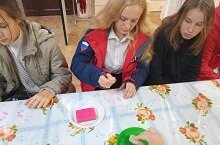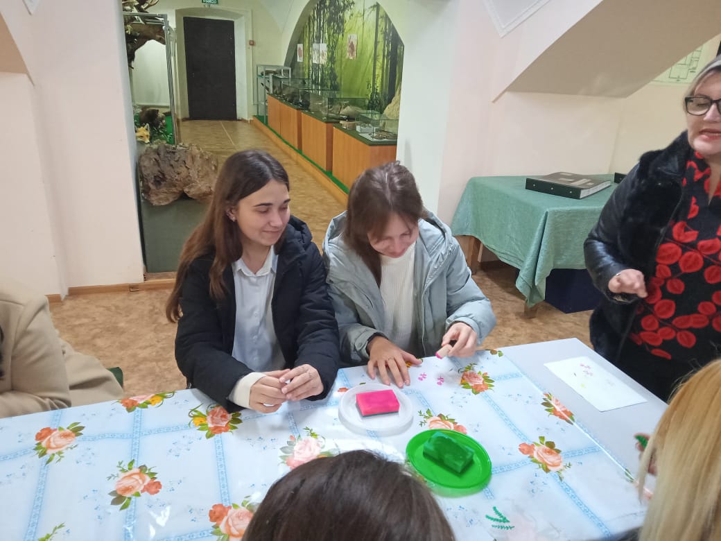 Вчера студентки клуба "Новая волна" вместе с руководителем приняли участие в мастер- классе " Верховая набойка на ткани", который провели сотрудники краеведческого музея города Мамадыш . Кичә "Яңа дулкын" клубы студентлары җитәкчеләре белән бергә Мамадыш шәһәренең туган якны өйрәнү музее хезмәткәрләре үткәргән "Тукымада өске басма" мастер - классында катнаштылар .