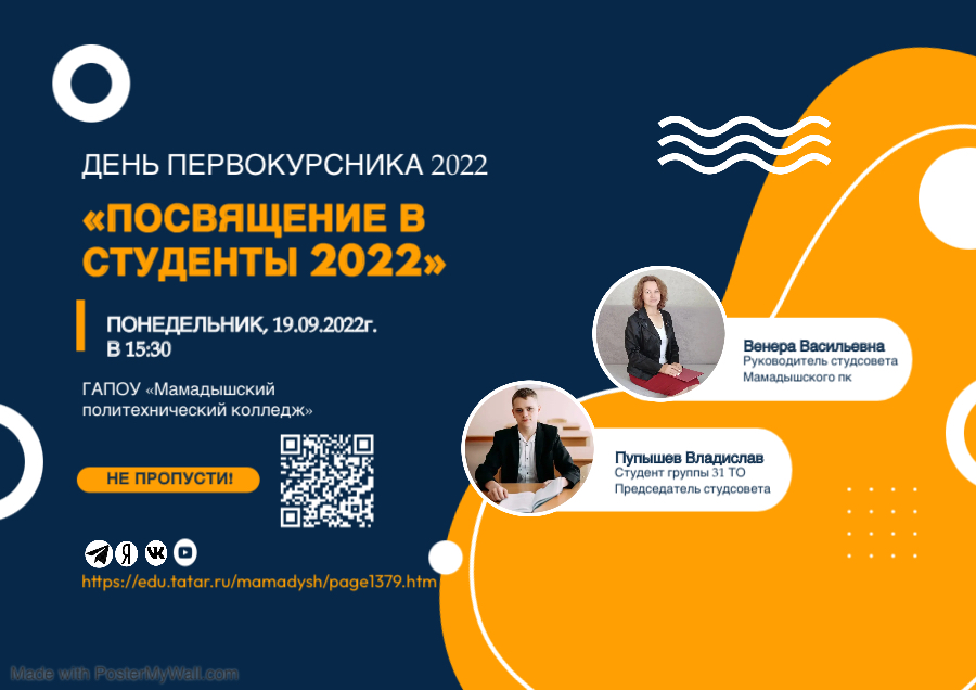 Сегодня в ГАПОУ "Мамадышский политехнический колледж" состоялось торжественное мероприятие для первокурсников. Посвящение в первокурсников было организовано в виде квест-игры. Радостные и довольные первокурсники надолго запомнят это мероприятие. Бүген Мамадыш политехник көллиятендә беренче курс студентлары өчен тантаналы чара узды. Беренче курс студентларына багышлау квест-уен рәвешендә оештырылды. Шатлыклы һәм канәгать беренче курс студентлары әлеге чараны озакка истә калдырачак.