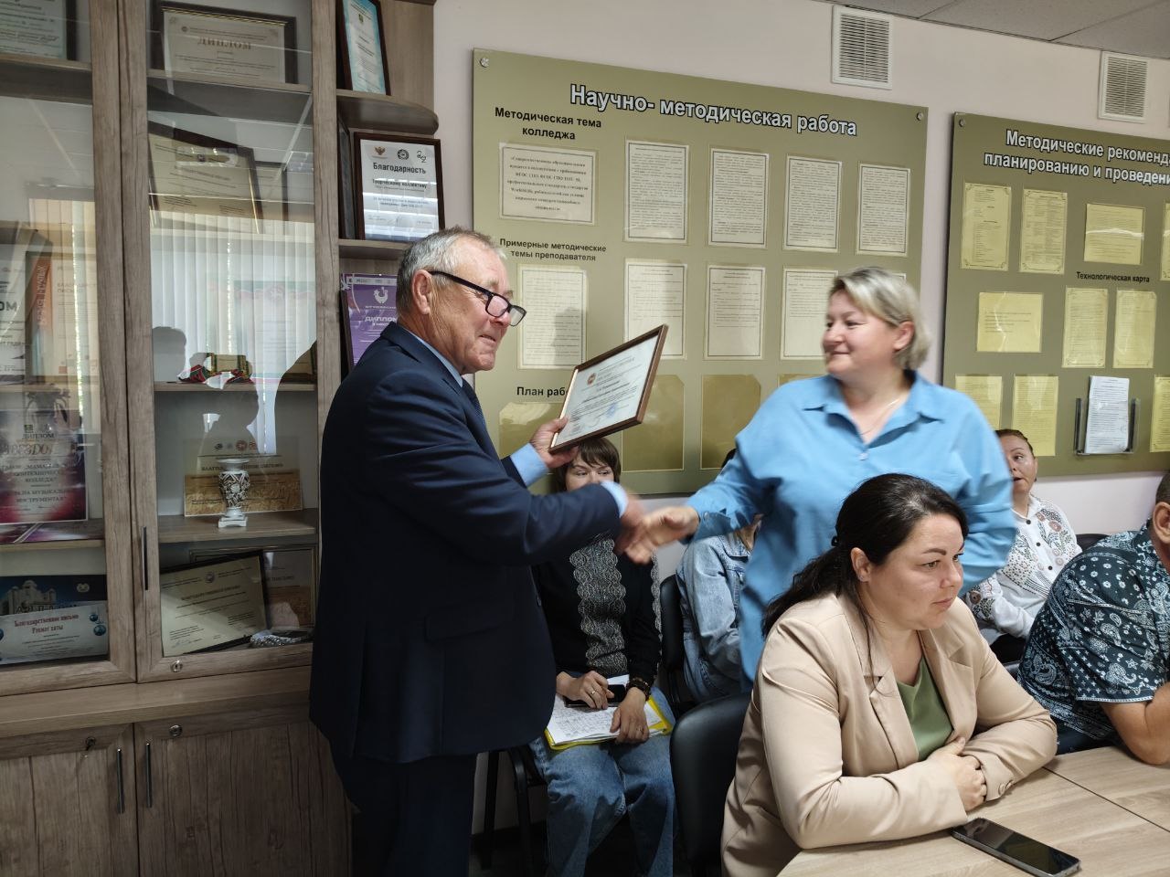 Диплом был вручен организатору колледжа Зиннатовой Э.Н., а также активному участнику этого чемпионата Чуприковой С.А.