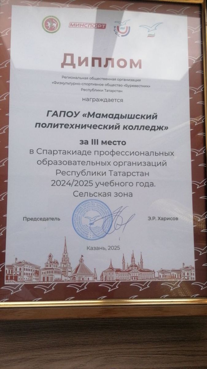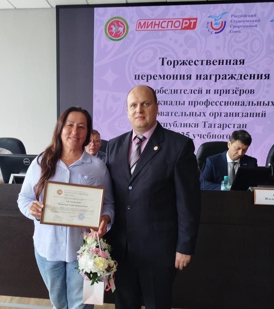 Сегодня состоялась торжественная церемония награждения призеров Спартакиады профессиональных образовательных организаций Республики Татарстан, призёров соревнований Студенческих спортивных лиг дивизиона «Б».