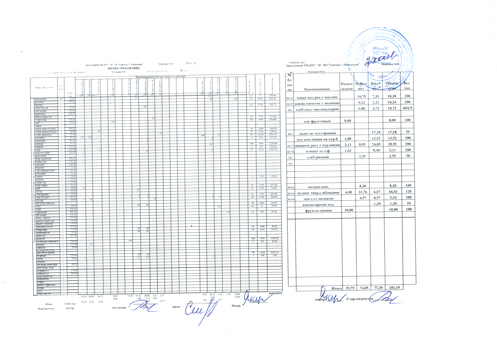 Меню дошкольники 20.01.2026