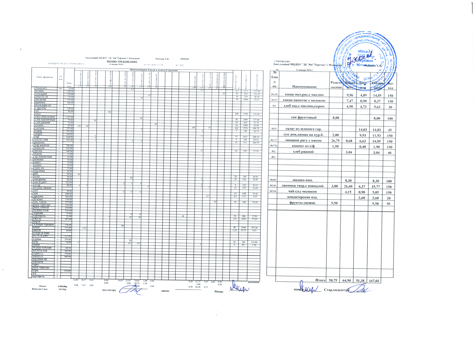 меню дошкольники 14.01.2026