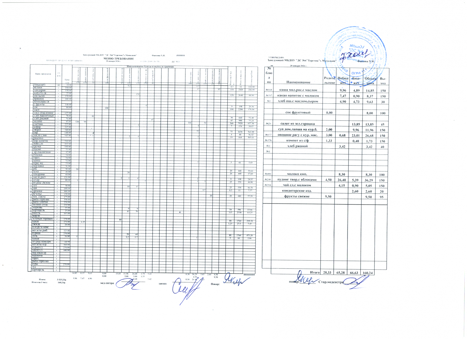 меню дошкольники 28.01.2026