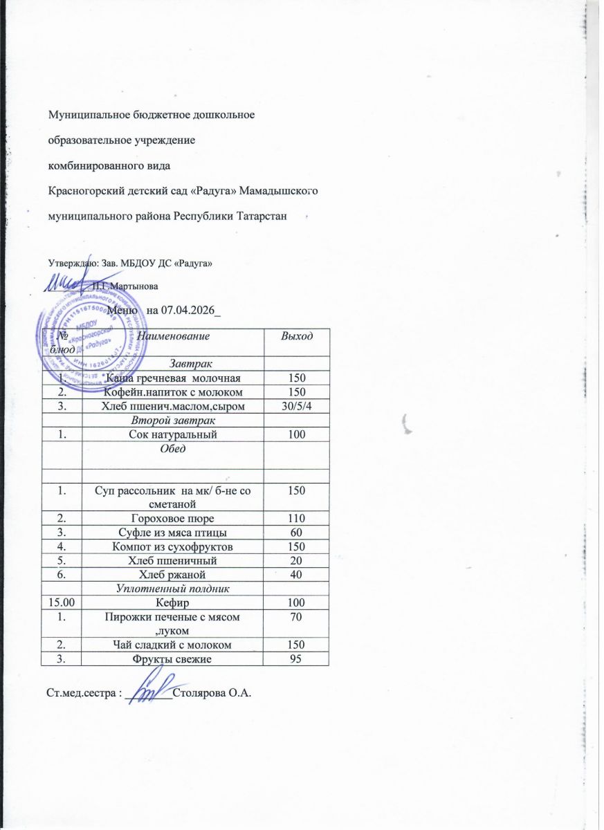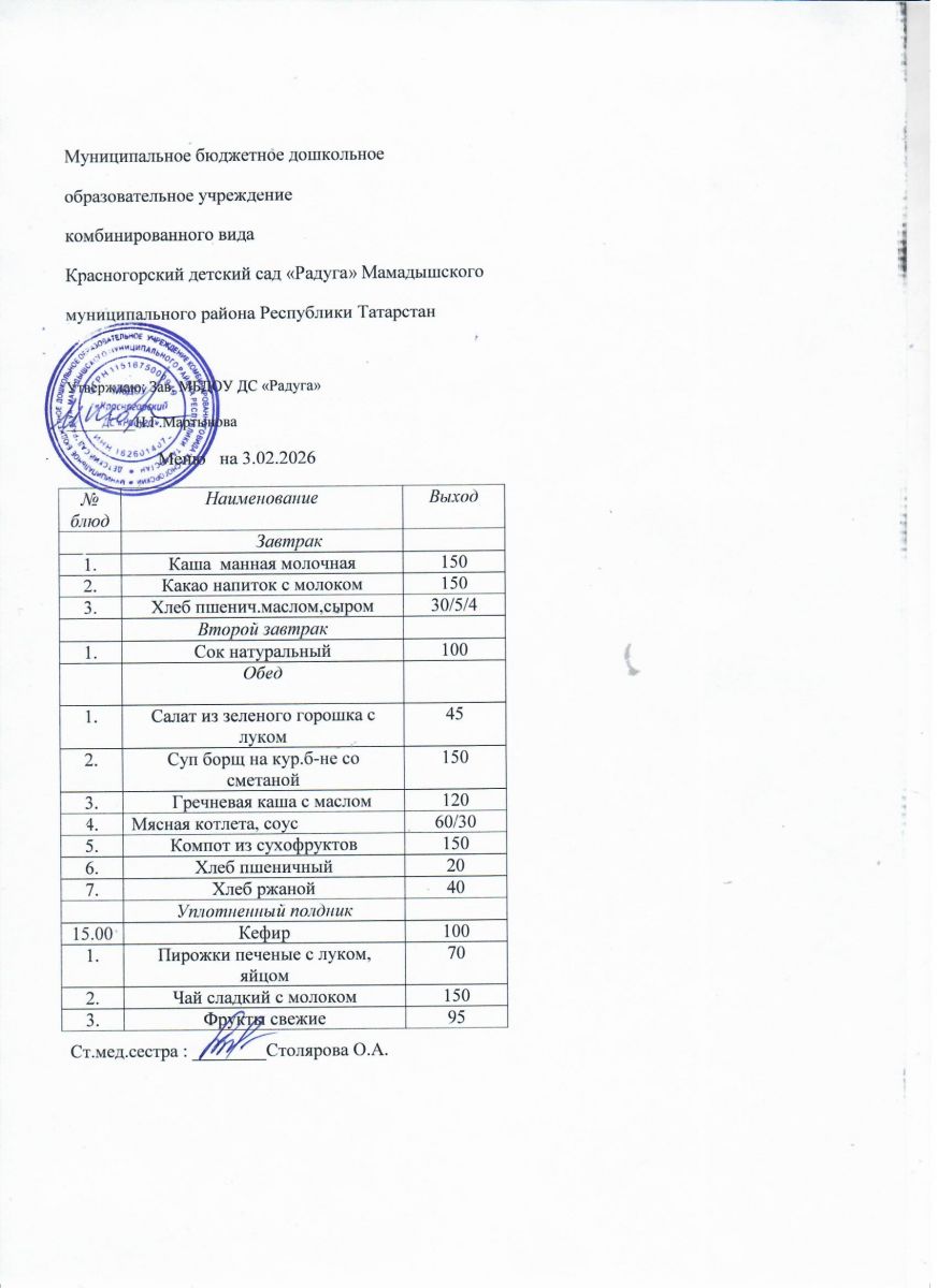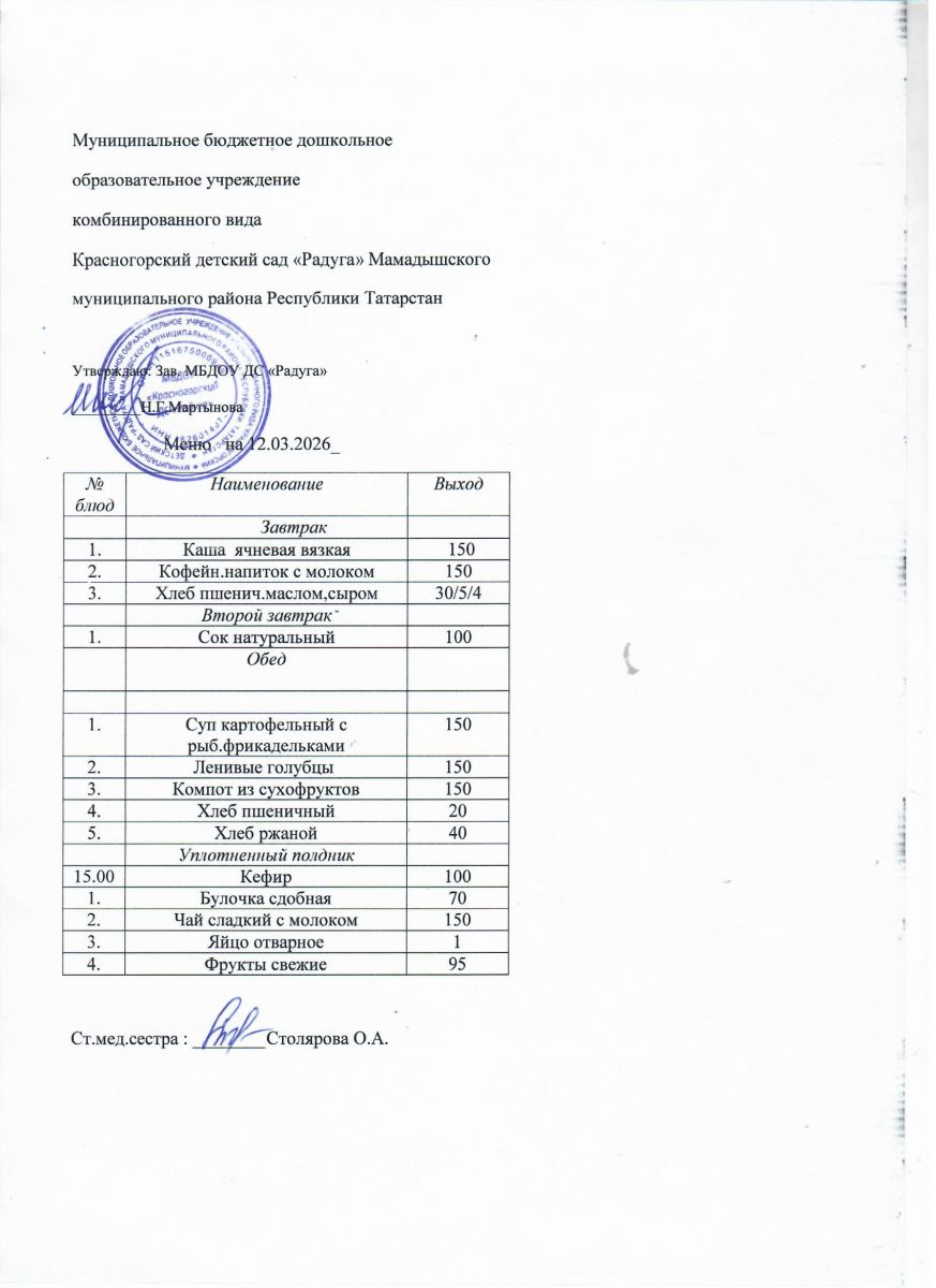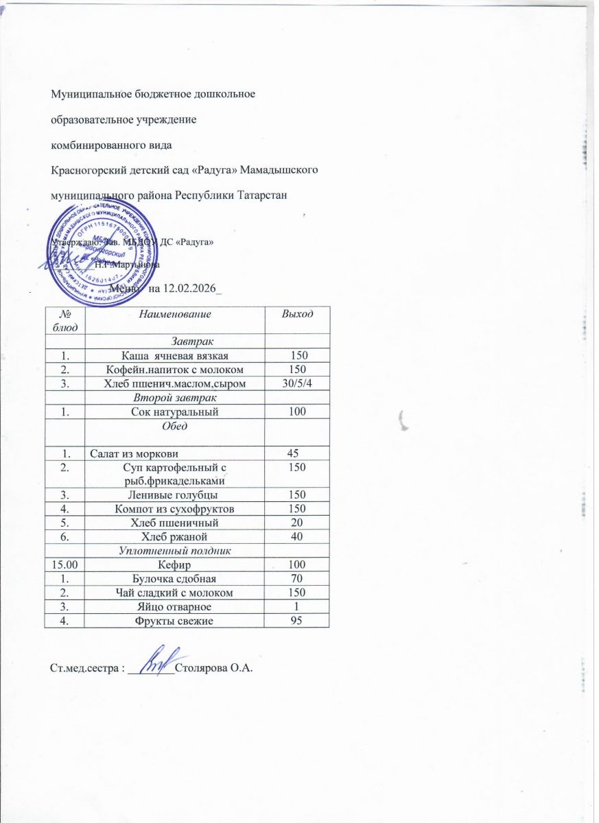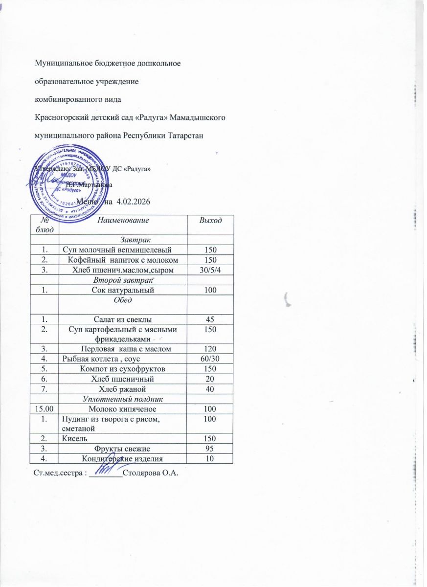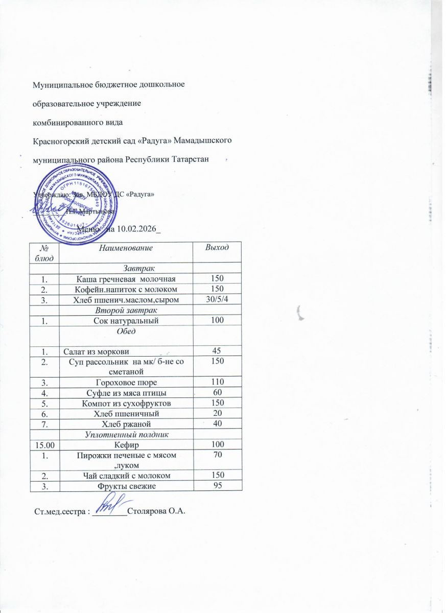 Муниципальное бюджетное дошкольное образовательное учреждение комбинированного вида «Красногорский детский сад «Радуга» Мамадышского муниципального района РТ