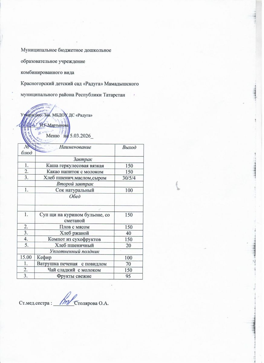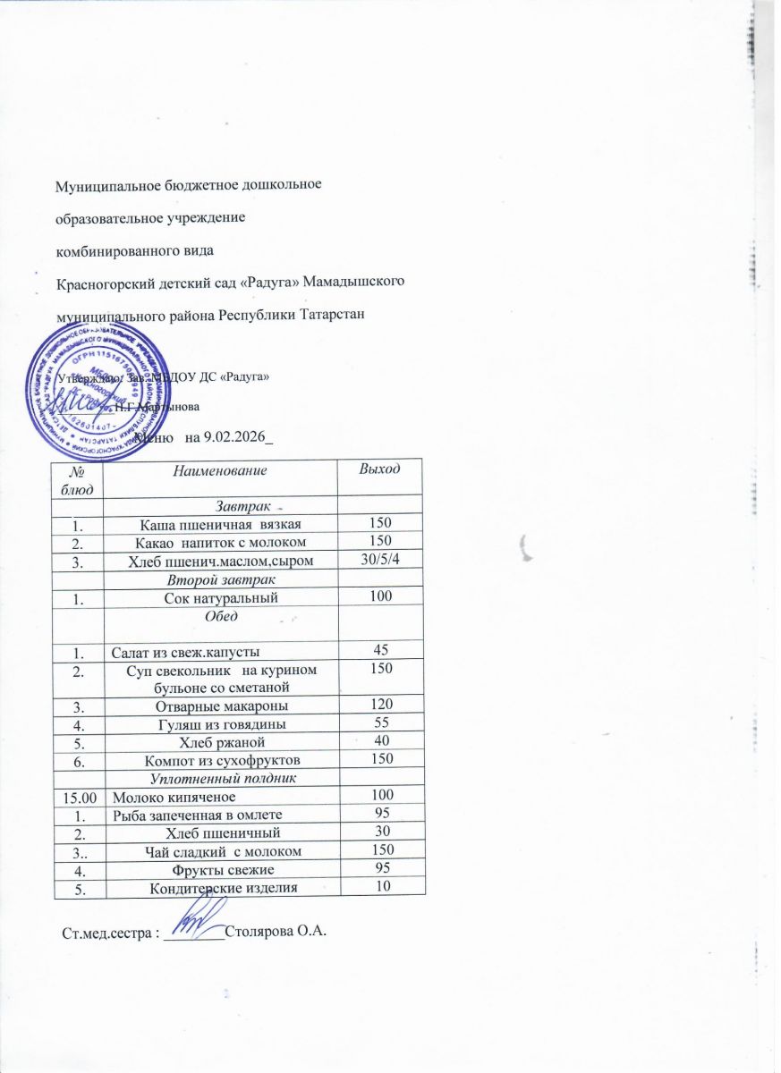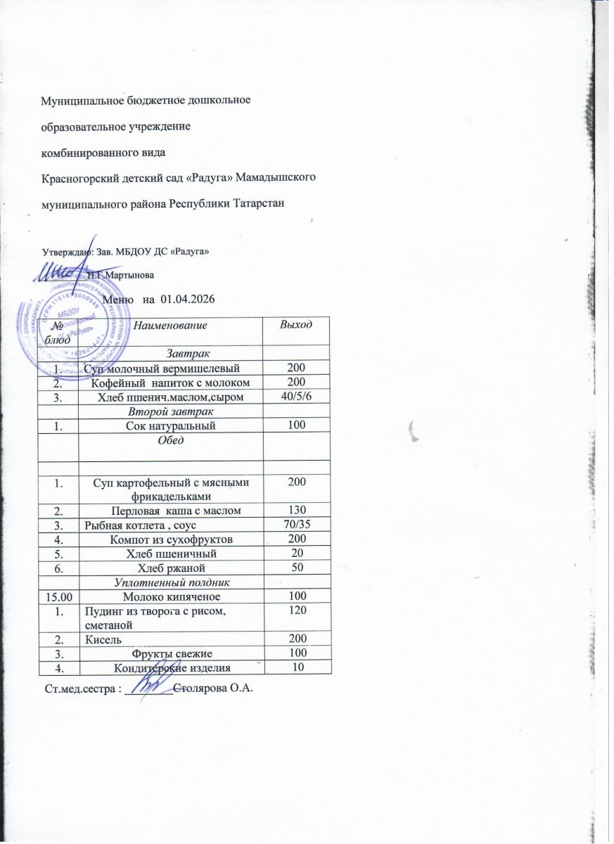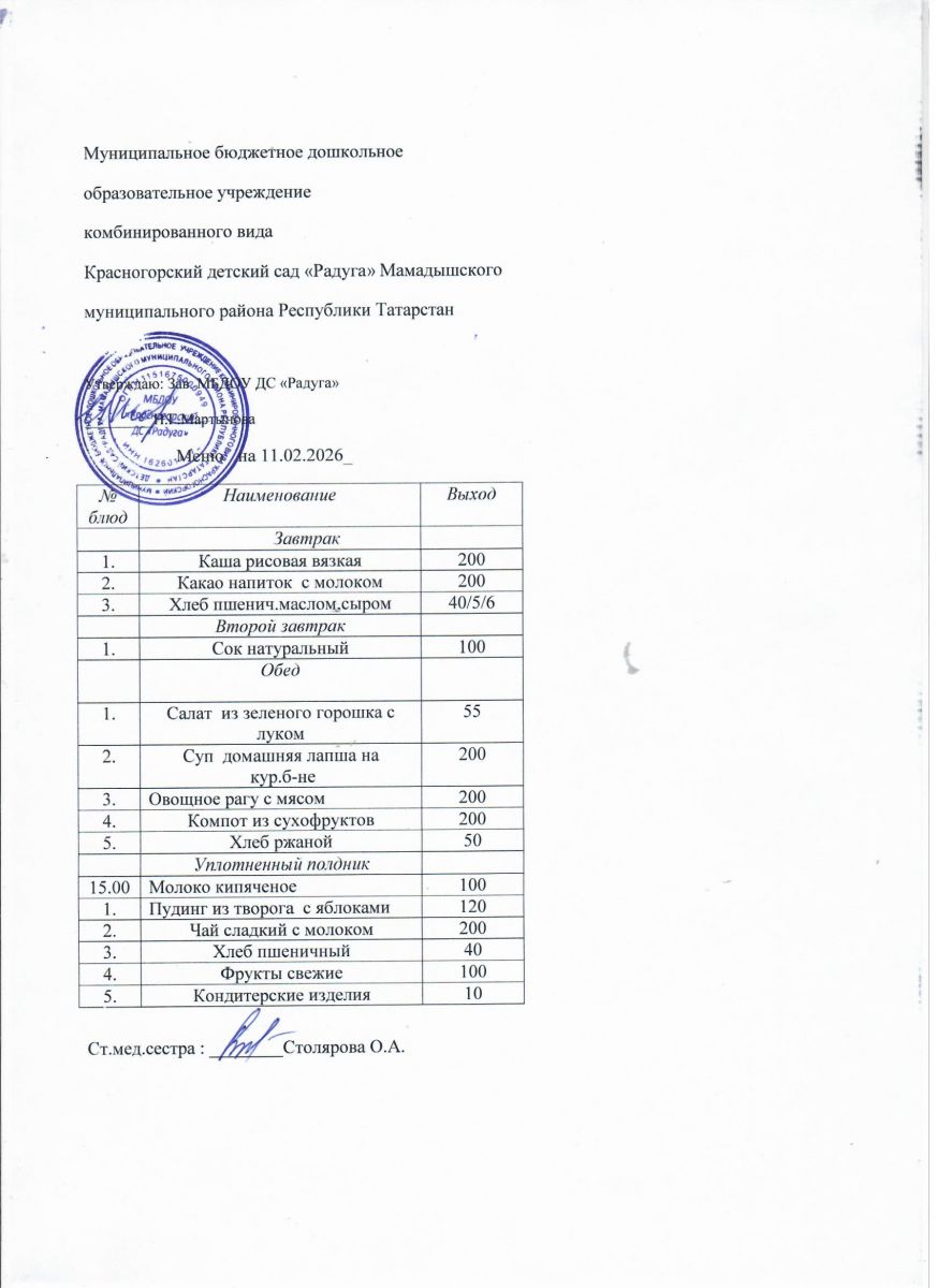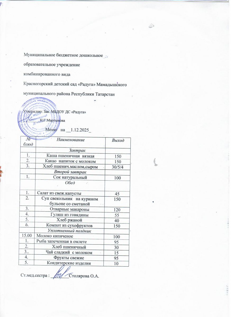 Муниципальное бюджетное дошкольное образовательное учреждение комбинированного вида «Красногорский детский сад «Радуга» Мамадышского муниципального района РТ