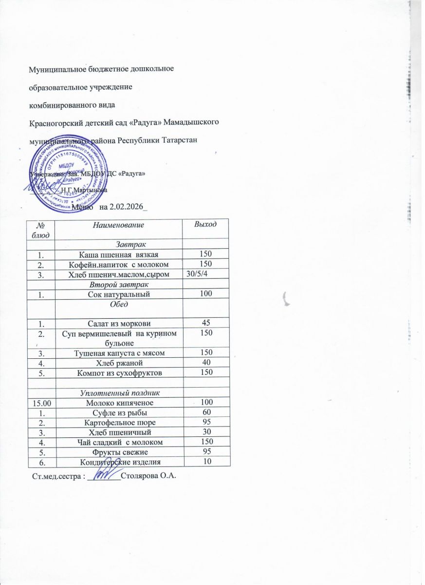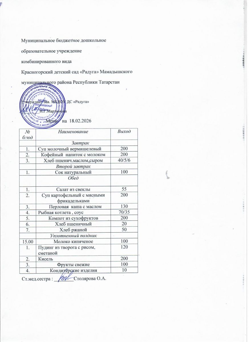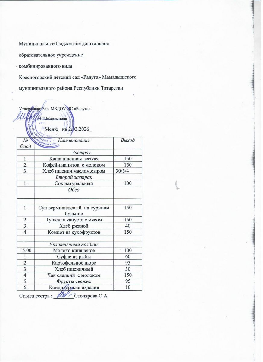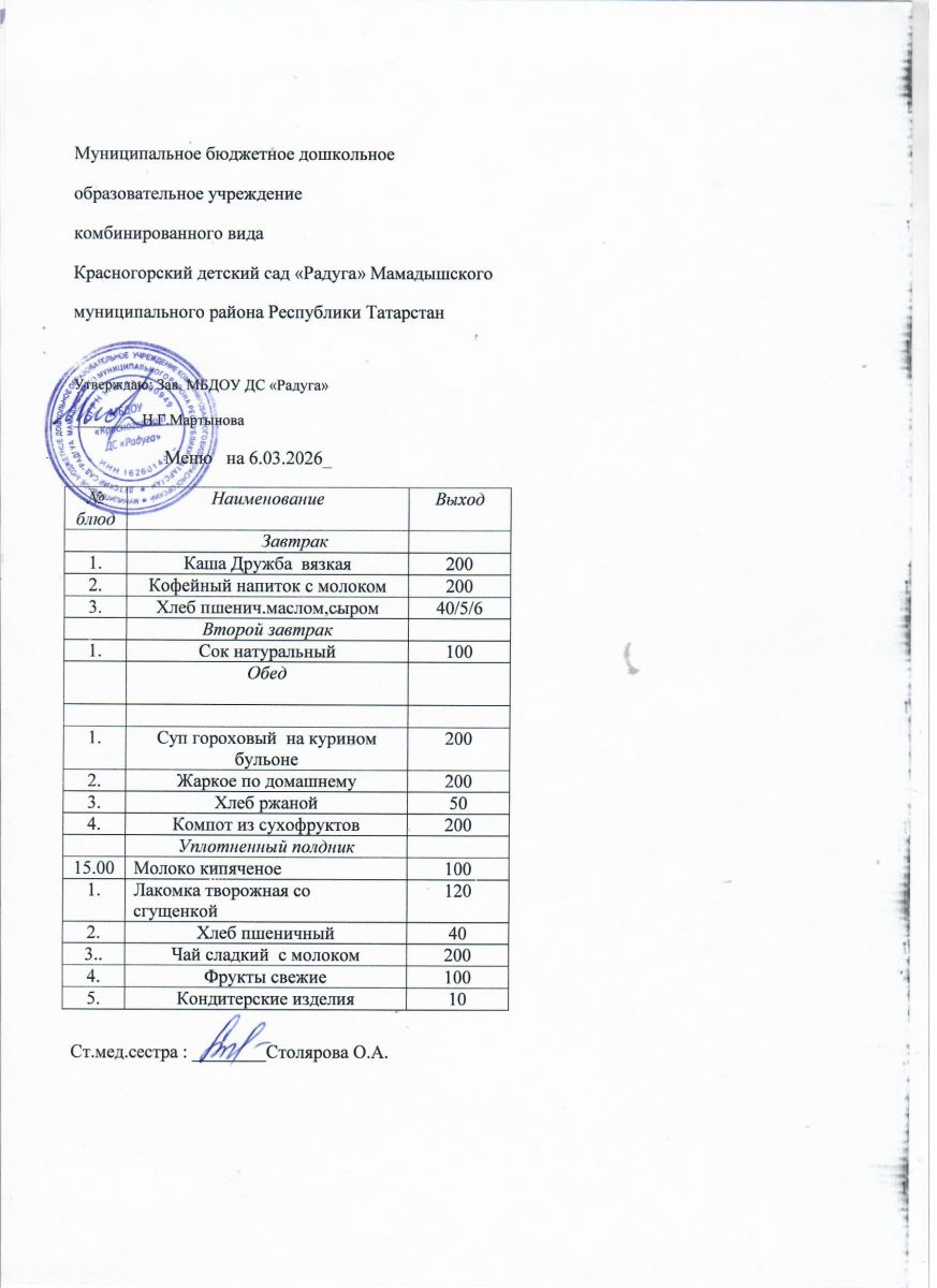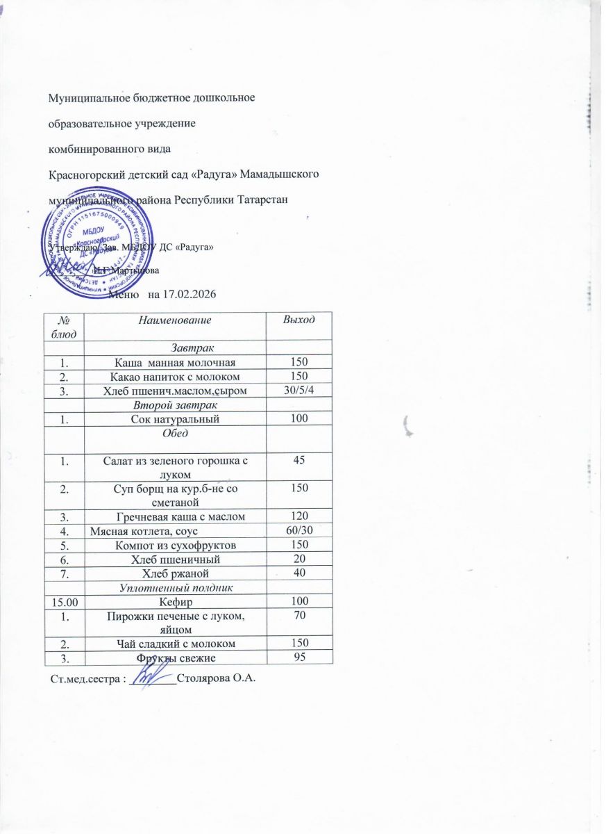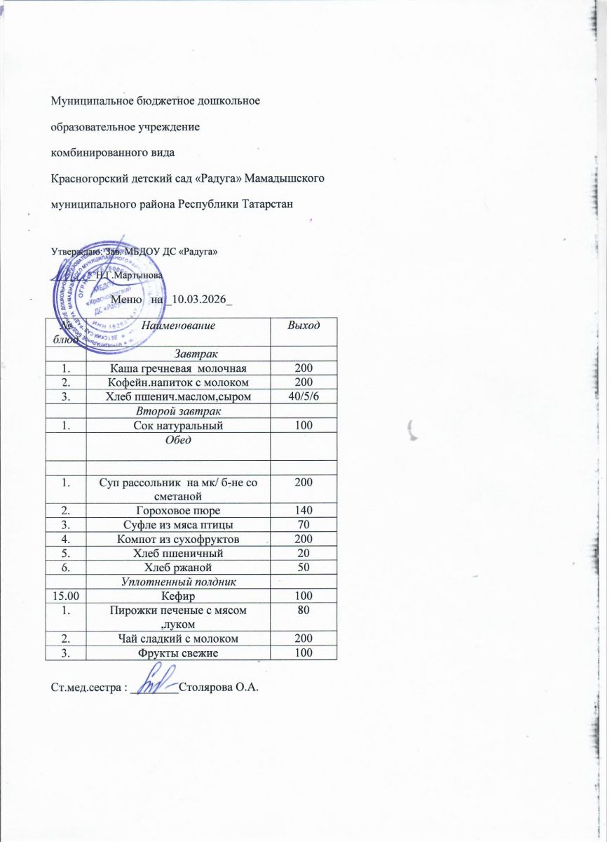Муниципальное бюджетное дошкольное образовательное учреждение комбинированного вида «Красногорский детский сад «Радуга» Мамадышского муниципального района РТ