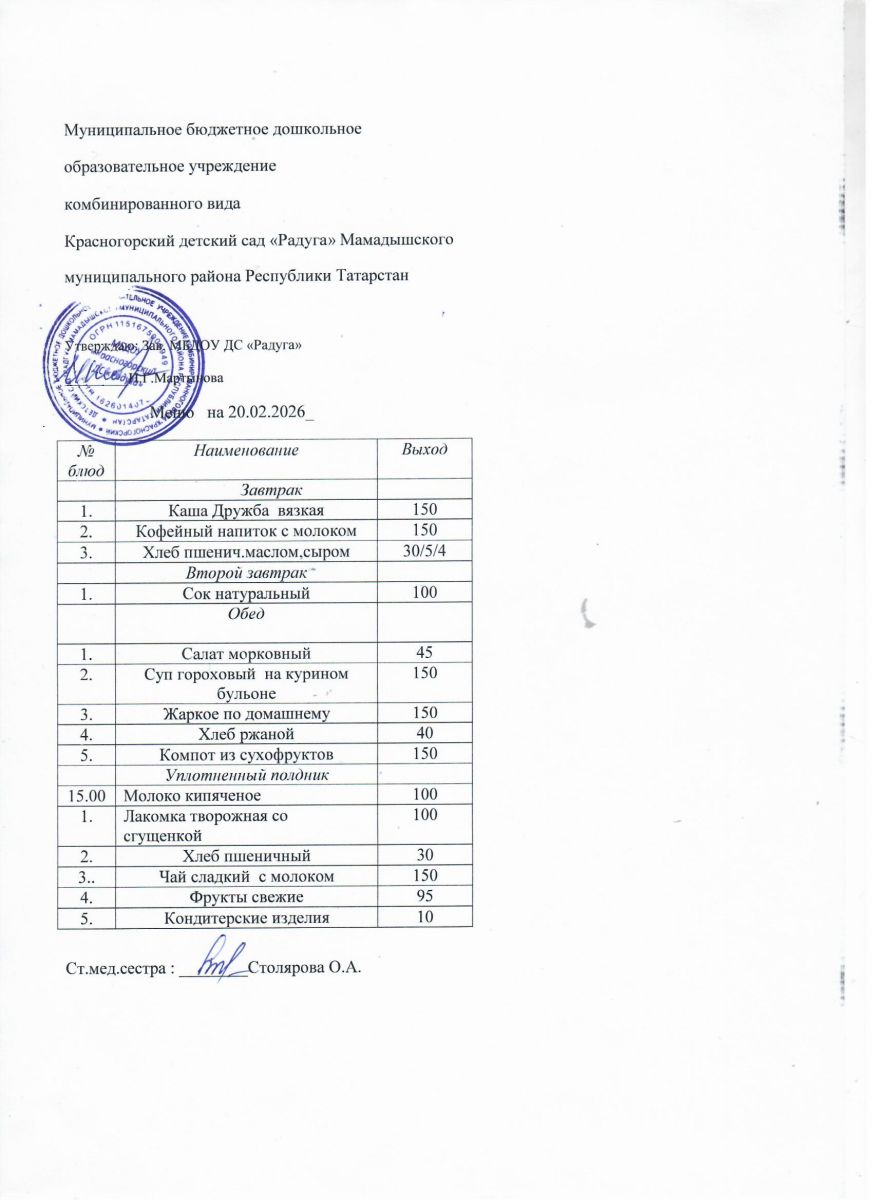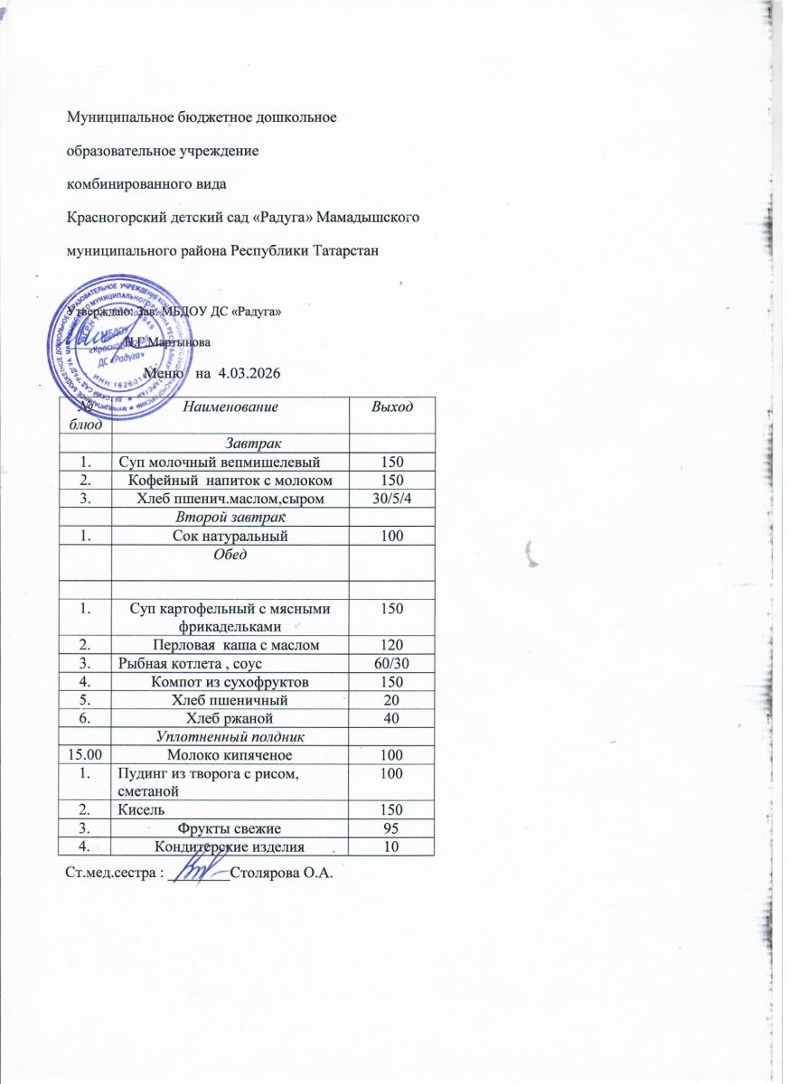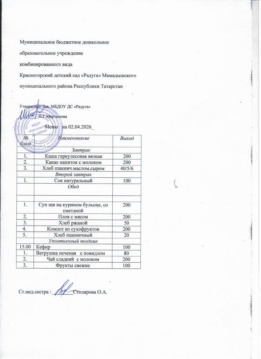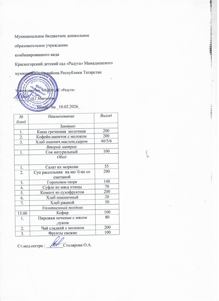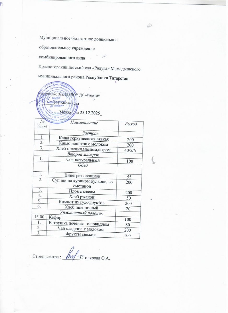 Муниципальное бюджетное дошкольное образовательное учреждение комбинированного вида «Красногорский детский сад «Радуга» Мамадышского муниципального района РТ