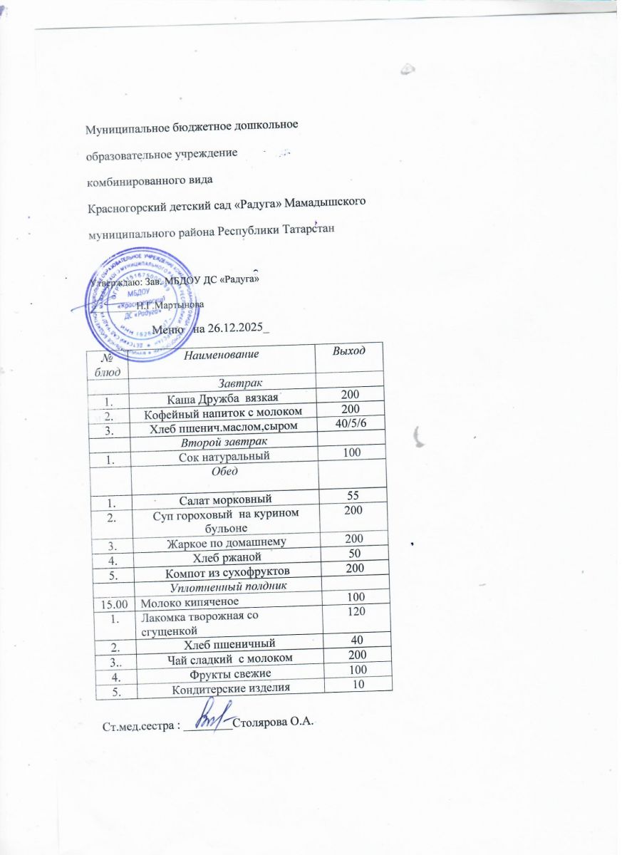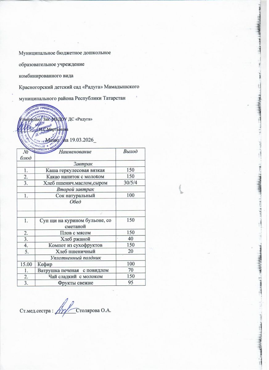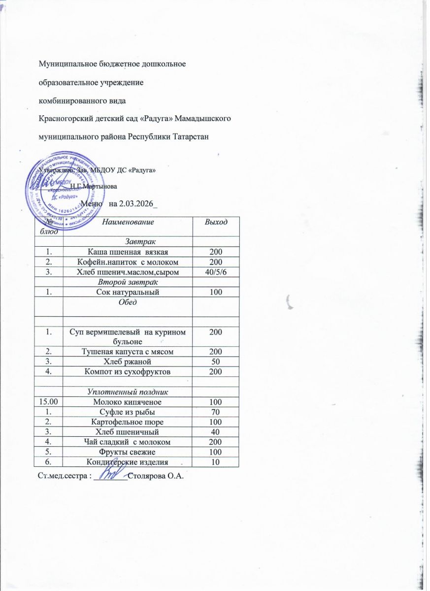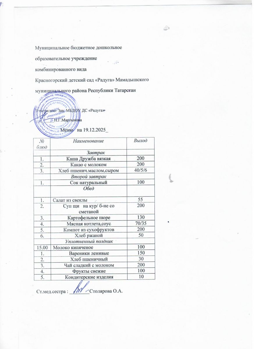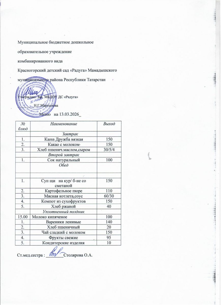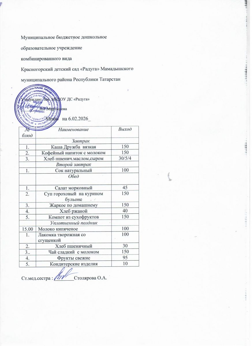 Муниципальное бюджетное дошкольное образовательное учреждение комбинированного вида «Красногорский детский сад «Радуга» Мамадышского муниципального района РТ