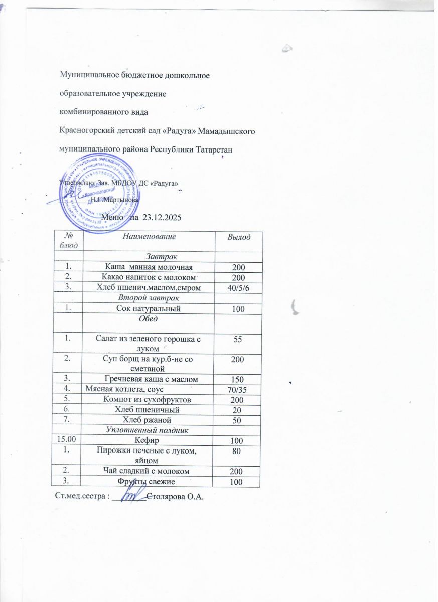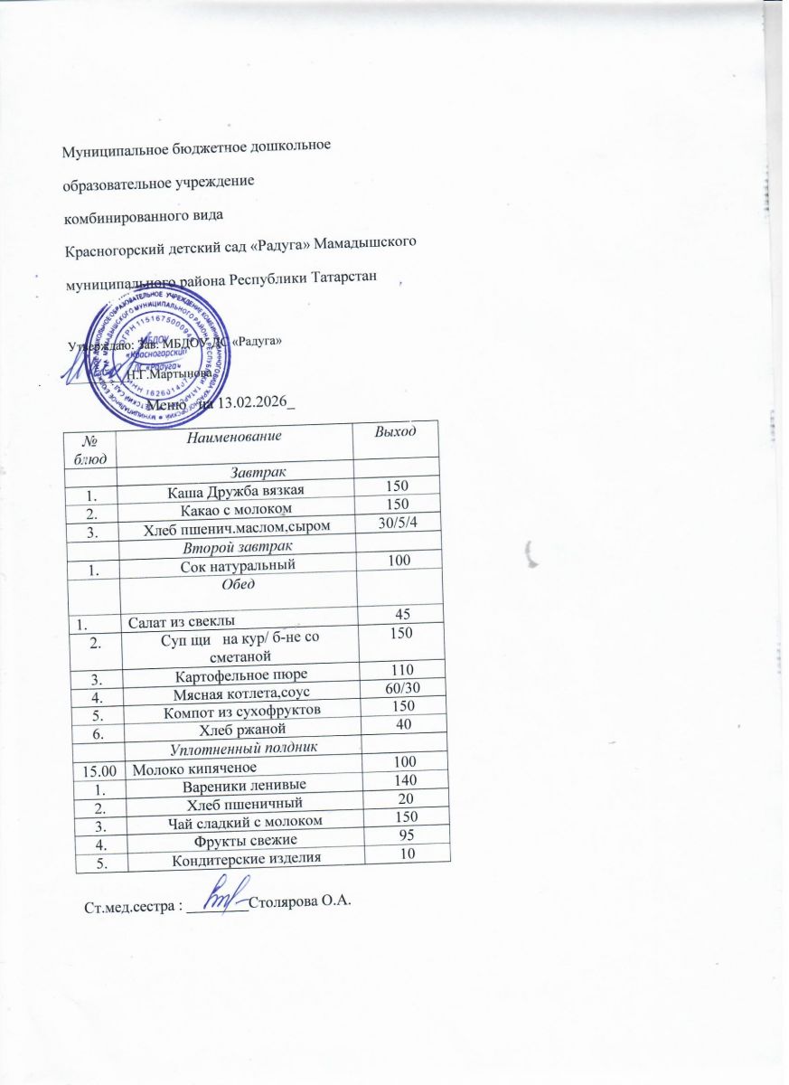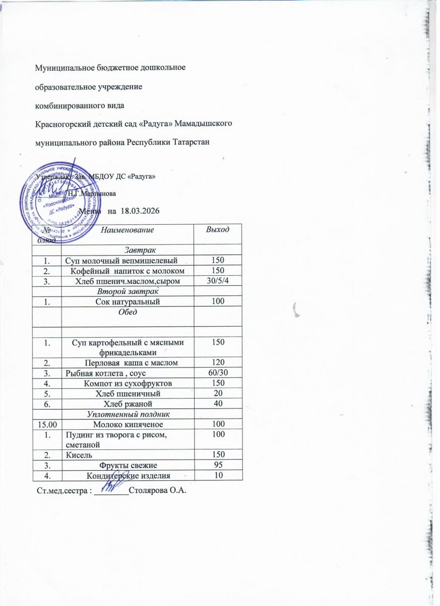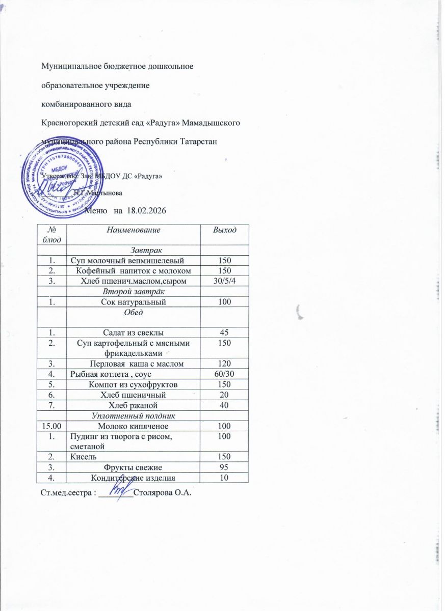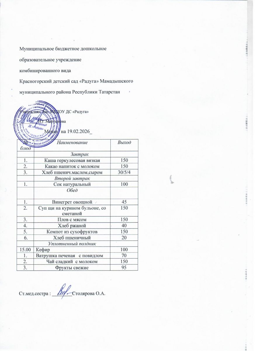 Муниципальное бюджетное дошкольное образовательное учреждение комбинированного вида «Красногорский детский сад «Радуга» Мамадышского муниципального района РТ