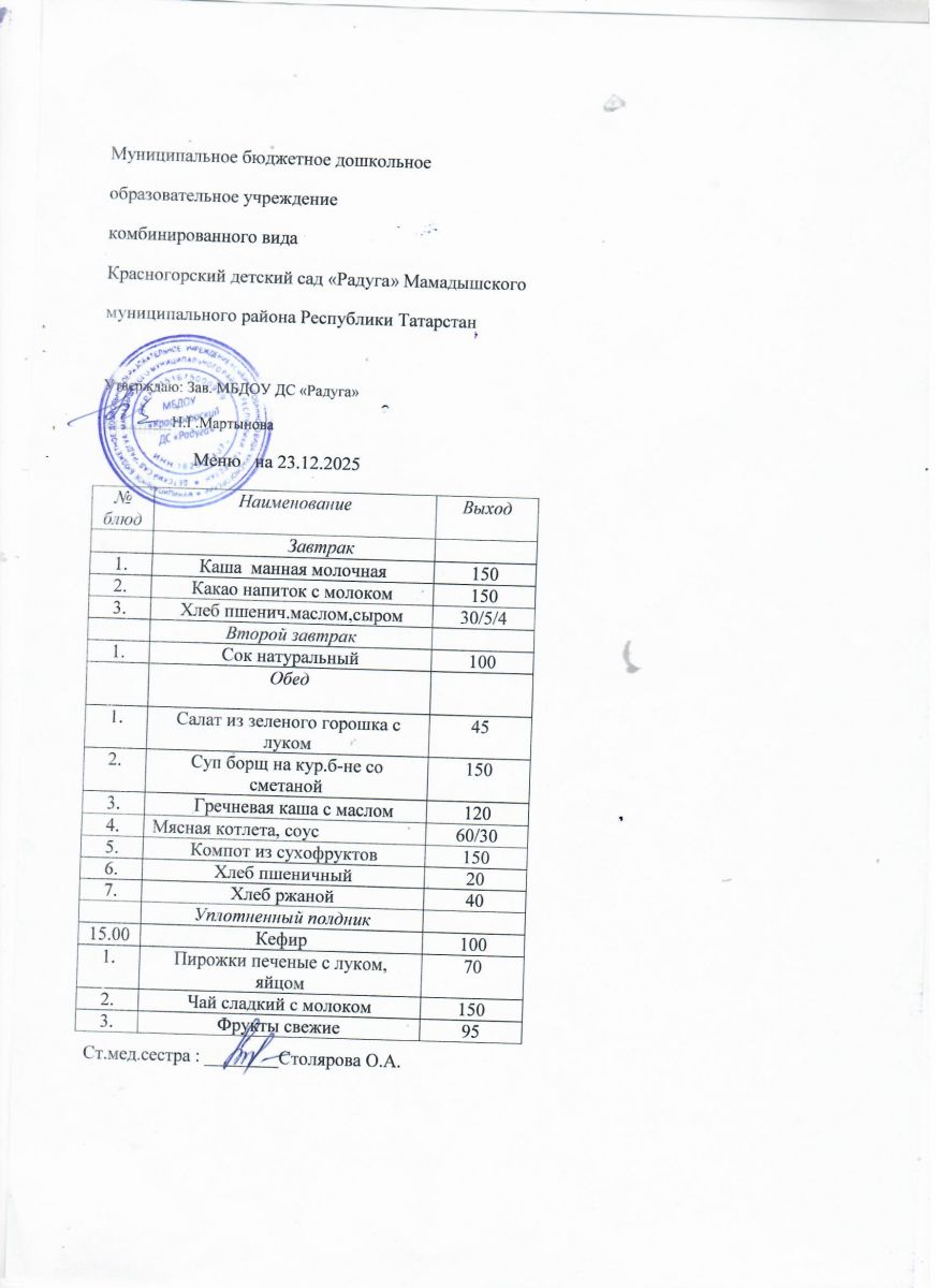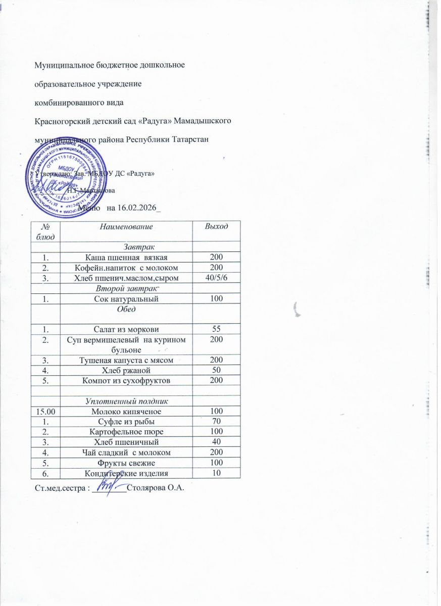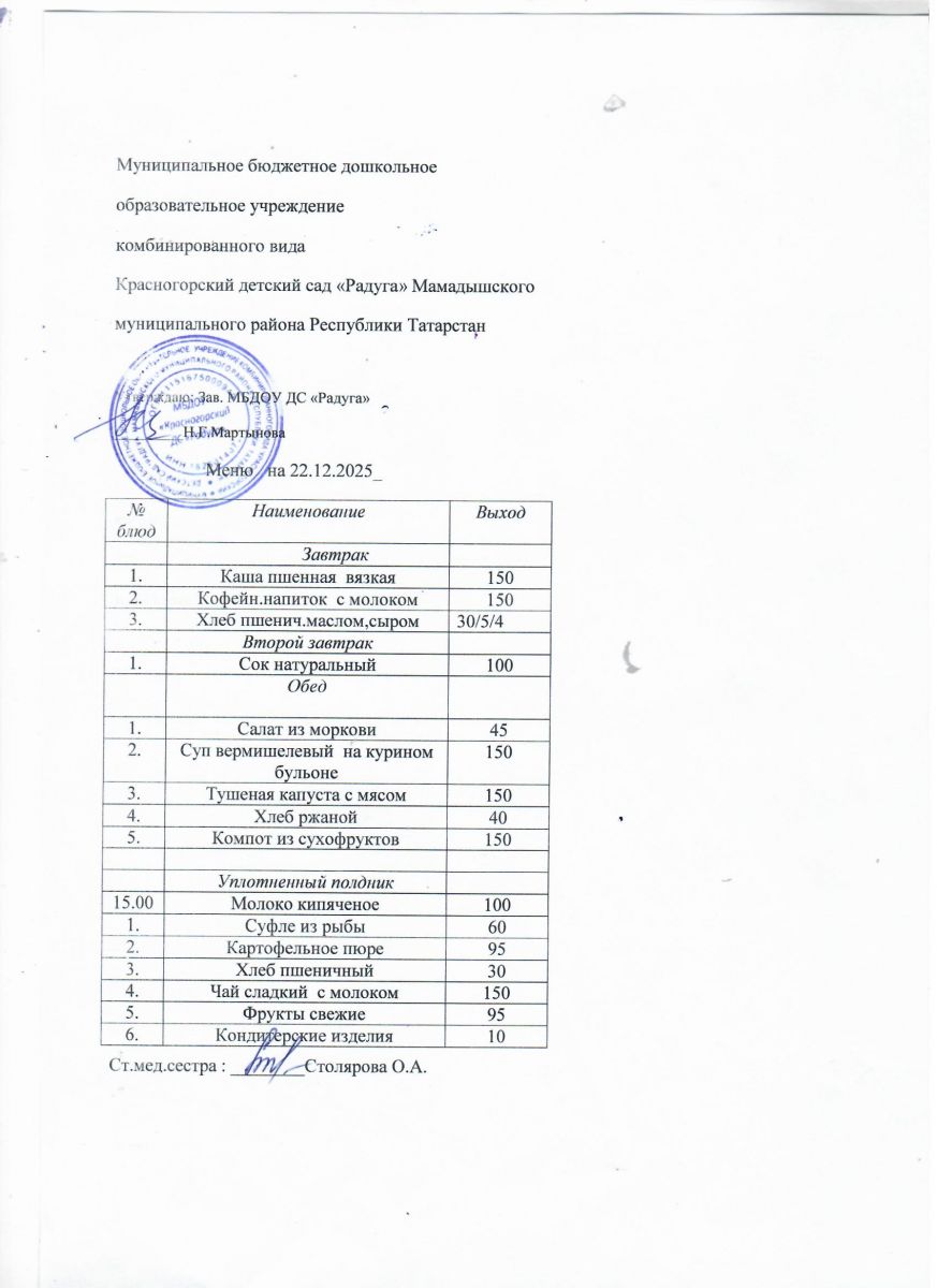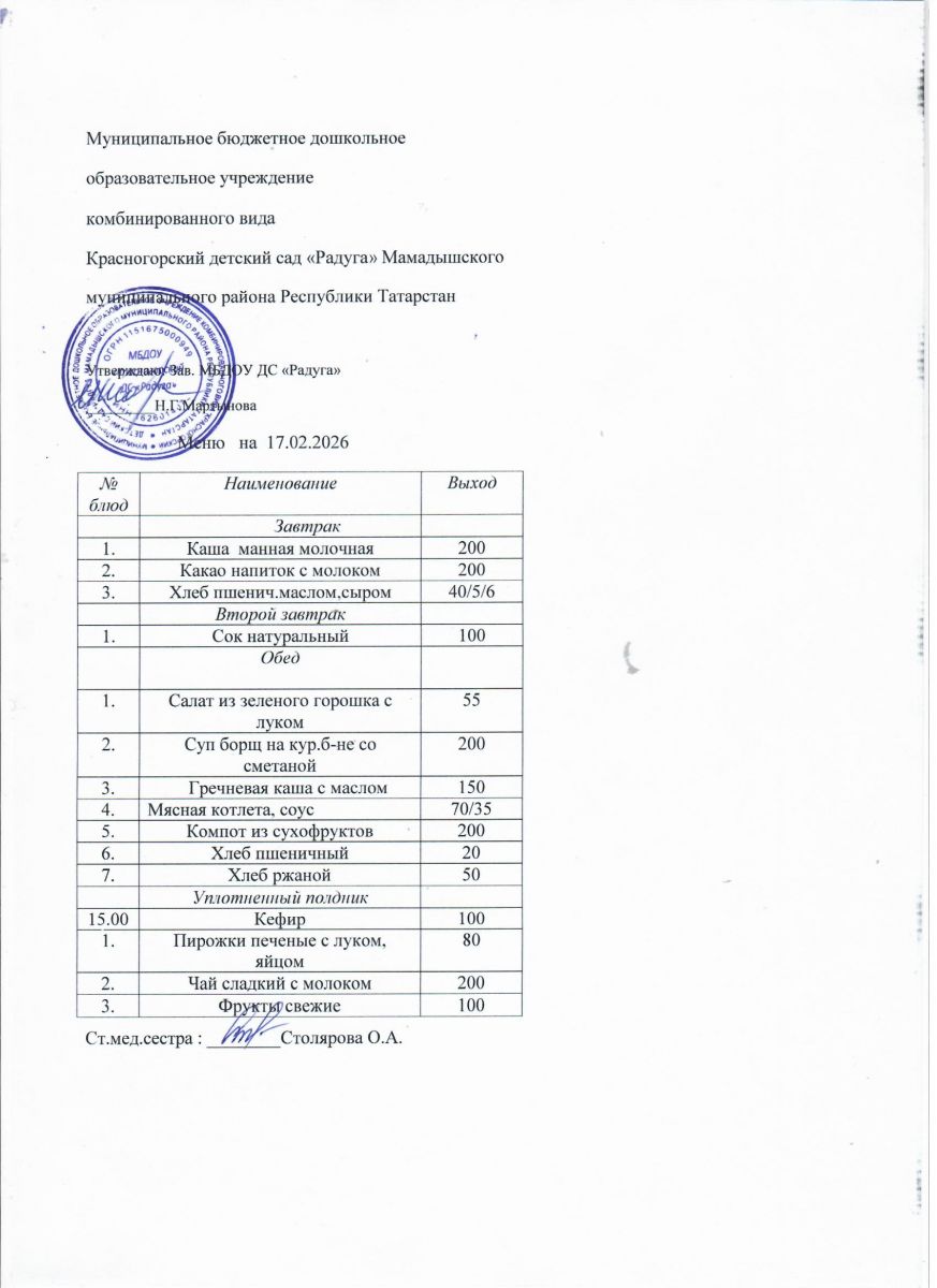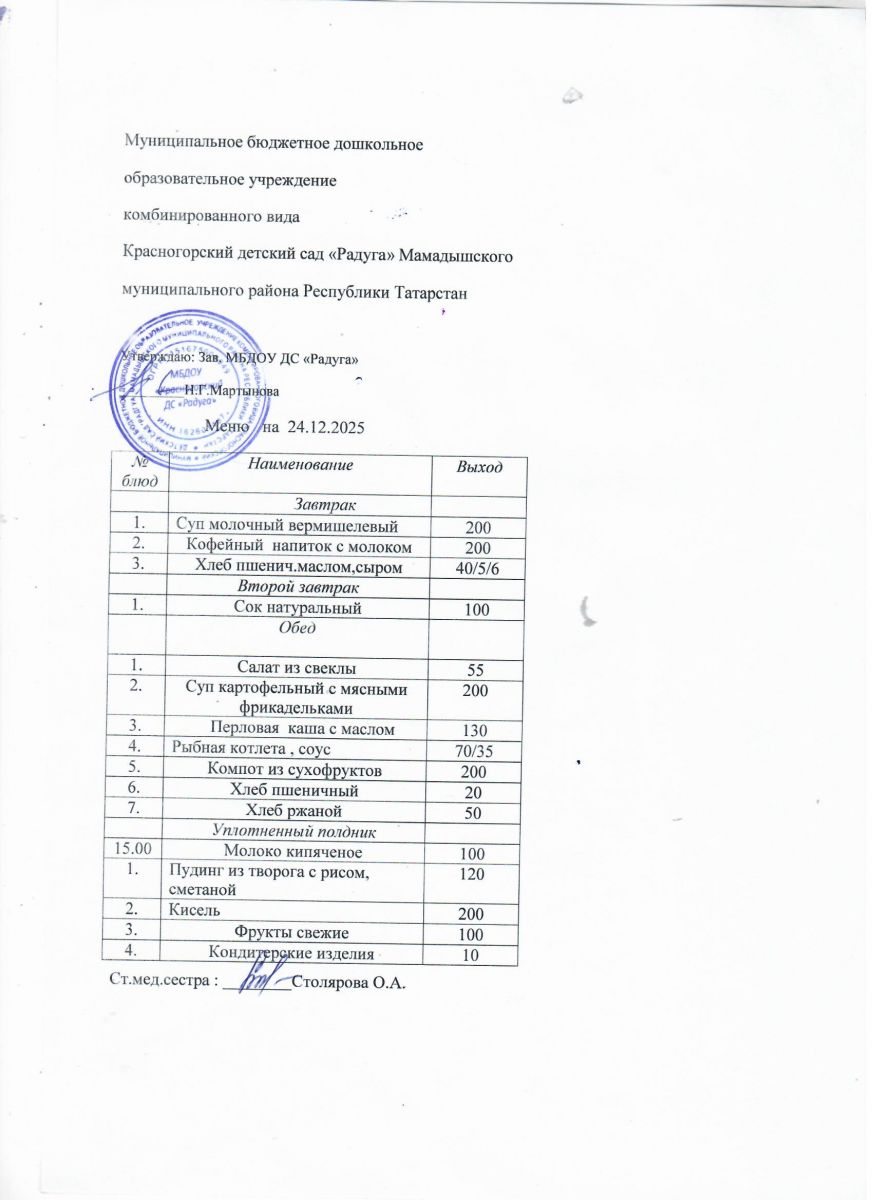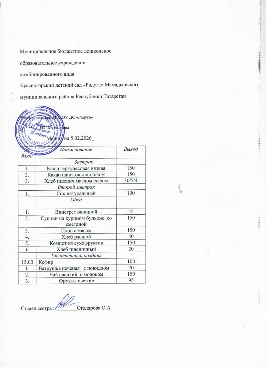 Муниципальное бюджетное дошкольное образовательное учреждение комбинированного вида «Красногорский детский сад «Радуга» Мамадышского муниципального района РТ