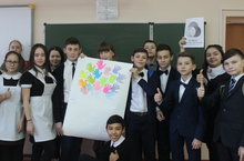 В этот день лидер личностного развития Хасанова Алина и активисты Российского движения школьников провели акцию "Дерево благодарности". Они рассказали ребятам о том, что нужно благодарить людей. Основная цель акции заключается в борьбе с грубым обращением, отсутствием культуры общения и поведения.