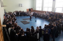 Активисты РДШ, ученики 11 класса показали мастер - класс по гиревому спорту для учащихся школы.