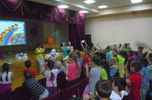 Яркое и красочное мероприятие состоялось в лагере "Радуга". Символ лагеря - семь разноцветных лент,символизирующих дружбу, любовь,взаимопонимание. Каждый день лагеря имеет свой определенный цвет и в поддержку ученики разучили яркий танец "Мы маленькие звезды", который объединяет всех учащихся лагеря.