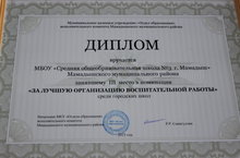 Школа награждениа дипломом III степени в номинации "ЗА ЛУЧШУЮ ОРГАНИЗАЦИЮ ВОСПИТАТЕЛЬНОЙ РАБОТЫ" .