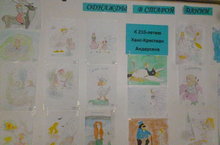 К 210-летию Г.Х.Андерсена ученики начальных классов подготовили рисунки по мотивам сказок писателя. Самые лучшие работы выставлены на стенде в фойе школы. Конкурс организовала школьный библиотекарь Мубаракшина Л.З, которая прививает любовь к чтению у учащихся младших классов.
