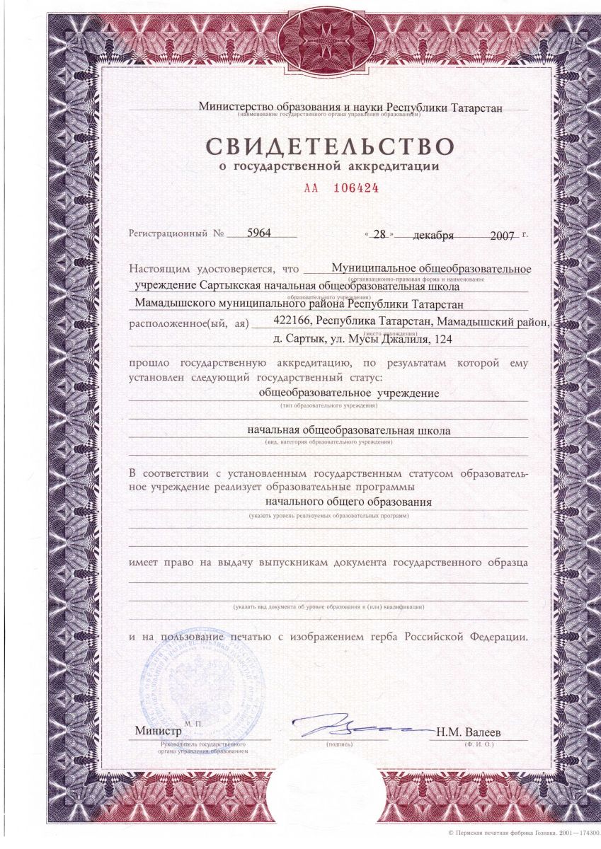МБОУ «Сартыкская начальная общеобразовательная школа» Мамадышского муниципального района РТ (реорганизация)