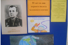 12 апреля в школе прошла тематическая линейка, посвященная 55-летию первого полета человека в космос. Заместитель директора по воспитательной работе Шишкина И.М. рассказала об истории отечественной космонавтики и первом летчике-космонавте планеты – Юрии Алексеевиче Гагарине. Был оформлен стенд, посвященный этой дате, объявлен конкурс рисунков.