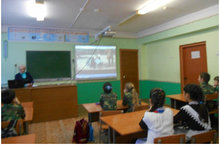 27 января в рамках Месячника гражданско-патриотического воспитания в школе прошли классные часы на патриотическую тему. Классный руководитель 5Б класса Сомова Е.А. провела для 5-6-х классов беседу о героизме людей в годы Великой Отечественной войны и показала учащимся документальные кадры о начале этой войны.