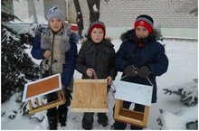 Учащиеся 3А и 2Б классов активно участвуют в акции «Покормите птиц зимой». В очередной раз они вывесили кормушки для птиц и положили в них корм.