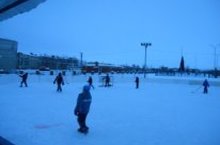 На школьном катке, который постоянно очищается от снега, каждый день катаются и играют в хоккей учащиеся школы.