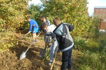 В рамках Осенней недели добра учащиеся 6а класса вскопали дендрологический отдел пришкольного участка.