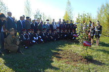 8 мая после принятии присяги в парке Победы для ветеранов и школьников была организована совместная акция «Посади дерево». В парке Победы ветераны с учащимися 9а и кадетами 6б, 10б класса вместе посадили 64 ели. Акция «Посади дерево» - прекрасный повод отдать дань уважения нашим ветеранам за их ратный подвиг. Кроме того, подобные мероприятия как нельзя лучше способствуют и патриотическому воспитанию молодежи. Все дальше уходят от нас страшные военные годы, но связь поколений нужно поддерживать как можно дольше. Ребята, которые сегодня сажали ели вместе с ветеранами, через несколько лет придут сюда и, глядя на деревья, обязательно вспомнят о светлом празднике - Дне Победы и о людях, благодаря которым мы сейчас живем в мире. Заложили Аллею героев, посвященную участникам ВОВ.