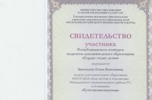 Запольская Елена Николаевна, учитель биологии и географии, награждена свидетельством участника Республиканского конкурса педагогов доп.образования "Сердце отдаю детям" в номинации "Естественно-научная".