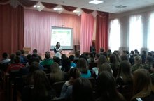 В рамках Недели биологии, географии и экологии Запольская Е.Н. в актовом зале для учащихся провела мероприятие по теме "Полезные и вредные продукты".