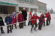На лыжные забавы вышли учащиеся 2-х классов. Они участвовали в лыжных эстафетах, в эстафетах с салазками, перетягивали канат и после этого сфотографировались на память.
