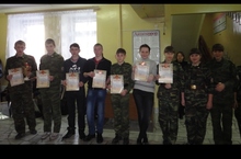Двадцать первого февраля на базе допризывной подготовки “Патриот” проходила Республиканская спартакиада среди кадетских классов по военно-прикладным видам спорта на переходящий кубок Совета ветеранов. Соревнования проходили по 8-ми видам. Команда нашей школы успешно выступила и приехала победителем, заняв почетное 1 место. По отдельным видам удостоились высших баллов по строевой подготовке, разборки, сборки автомата, снаряжению магазина, подтягиванию, огневой подготовке. Грамотами в личном зачете были удостоены Мальцев Артур, Пузырёв Антон.