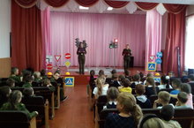 Учащиеся старших классов,совместно с сотрудниками ГАИ,провели практическое занятие на знание правил дорожного движения.