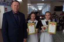 Сегодня на линейке директор школы поздравил Степанову Кристину и Низамиеву Гульназ, которые заняли 3 место в районном конкурсе «Мы выбираем мир!».