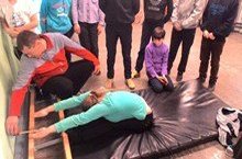 Мастер-класс показала ученица 9б класса Виктория Ефимова, которая с легкостью выполняет упражнения "мостик", "шпагат", "лягушка"и другие упражнения на гибкость. Среди педагогов успешно продемонстрировала свои способности воспитатель Гульдауся Сиразеева, которая является ещё и мамой троих детей!