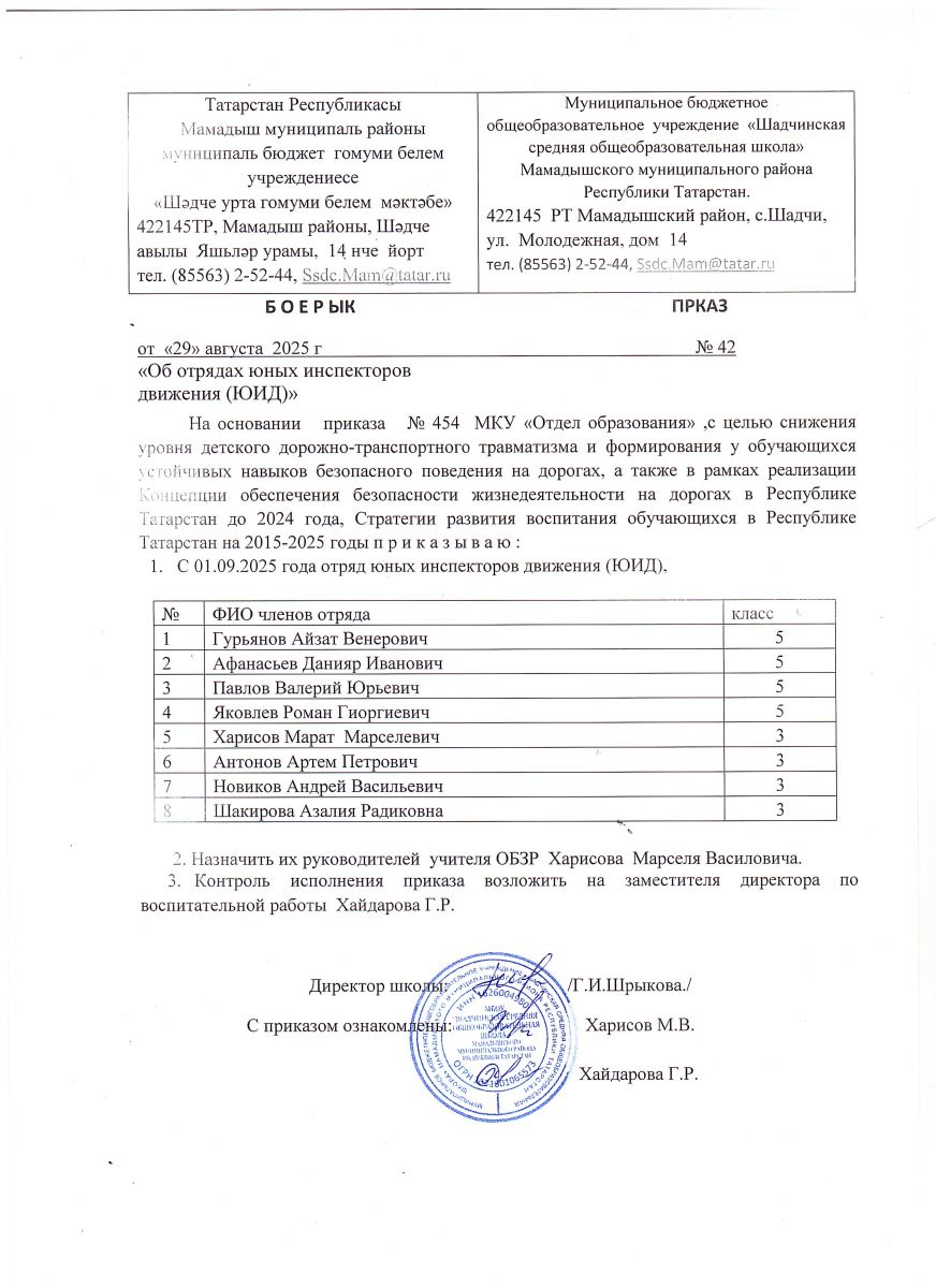 | Адрес: | 422145, Республика Татарстан, Мамадышский район, с. Шадчи, ул. Молодёжная, д. 14 |