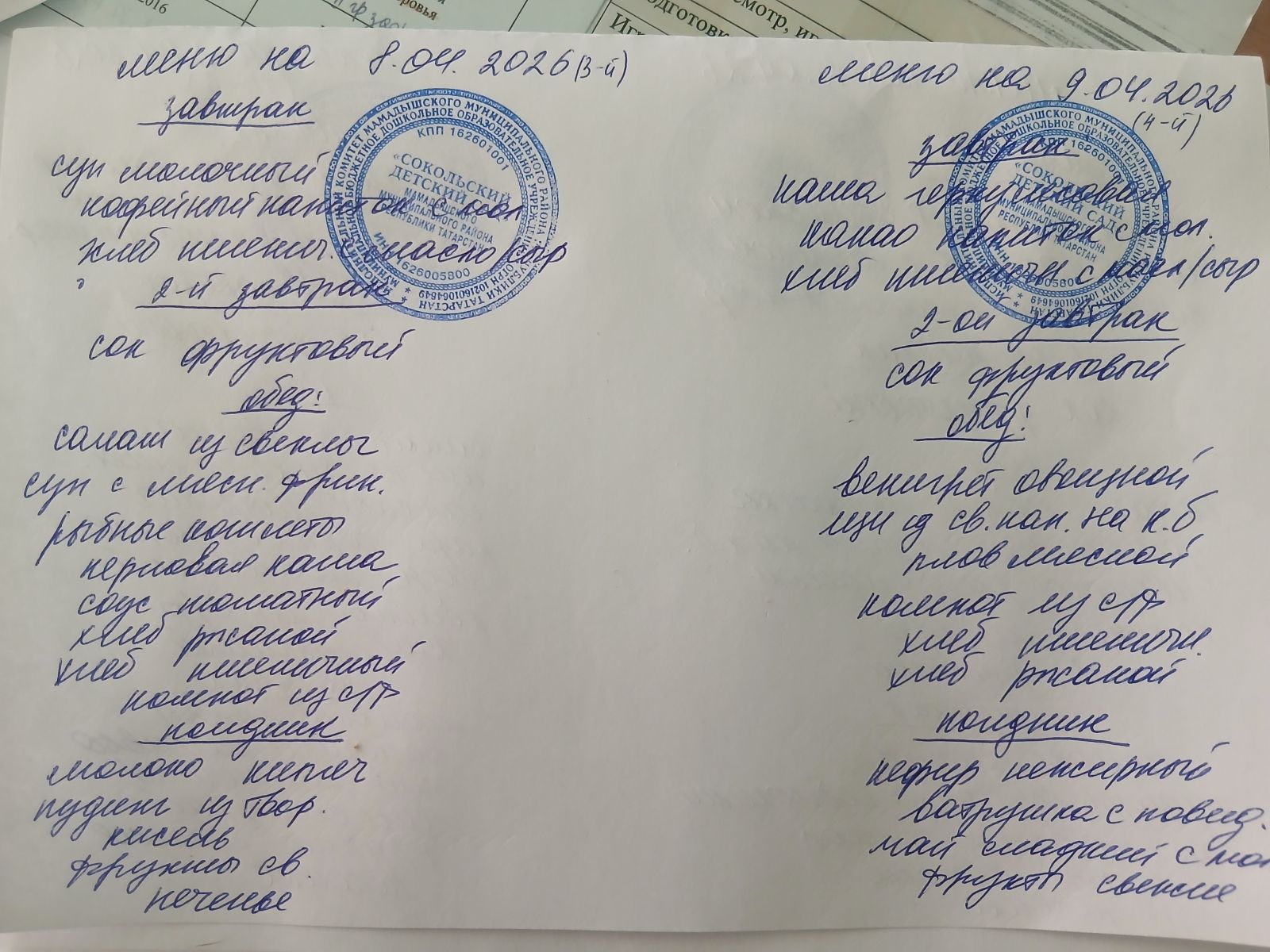 Меню на 8.04.26-9.04.26