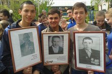 9 май көнне мәктәпнең 3 укучысы районда Җиңү парадында катнашты.