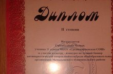Дипломом награждена ученица 11 ого класса Сибгатуллина Чулпан.