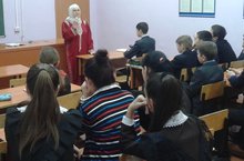 Ветеран укытучы, авылыбыз абыстае Аухадиева Рашида Хөсәен кызы мәктәп укучыларына әхлак дәресләре бирә.
