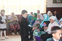Башлангыч класс укучылары өлкәннәрне котлый.