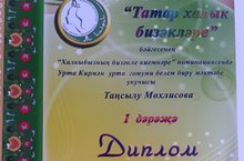 Мәктәпнең 7 нче класс укучысы Мухлисова Таңсылу районыбызда эшләп килүче "Ак калфак" хатын-кызлар оешмасы тарафыннан уздырылган бәйгедәактив катнашып, 1урынны алды.Котлыйбыз, Таңсылу!