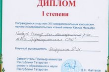 Беренчелек 9 нчы класс укучысы Гибазов Фәннүрдә.