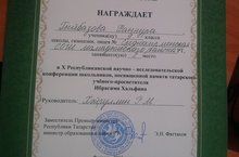 Победитель 4 Республиканском конкурсе исследовательских работ и проектов школьников Мухлисова Т.- 7класс г Нижнекамск