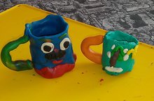 Начали подготовку ко Дню Защитника Отечества на занятиях слепили кружки для дедушек.